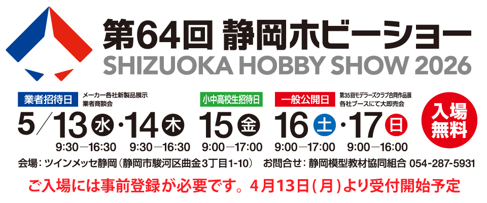 日本最大級のプラモデルや鉄道模型、RCモデル等の模型展示会「第64回静岡ホビーショー2026」に当家具組合の組合員企業が協賛出展いたします。(2026年4月13日発信!!)
